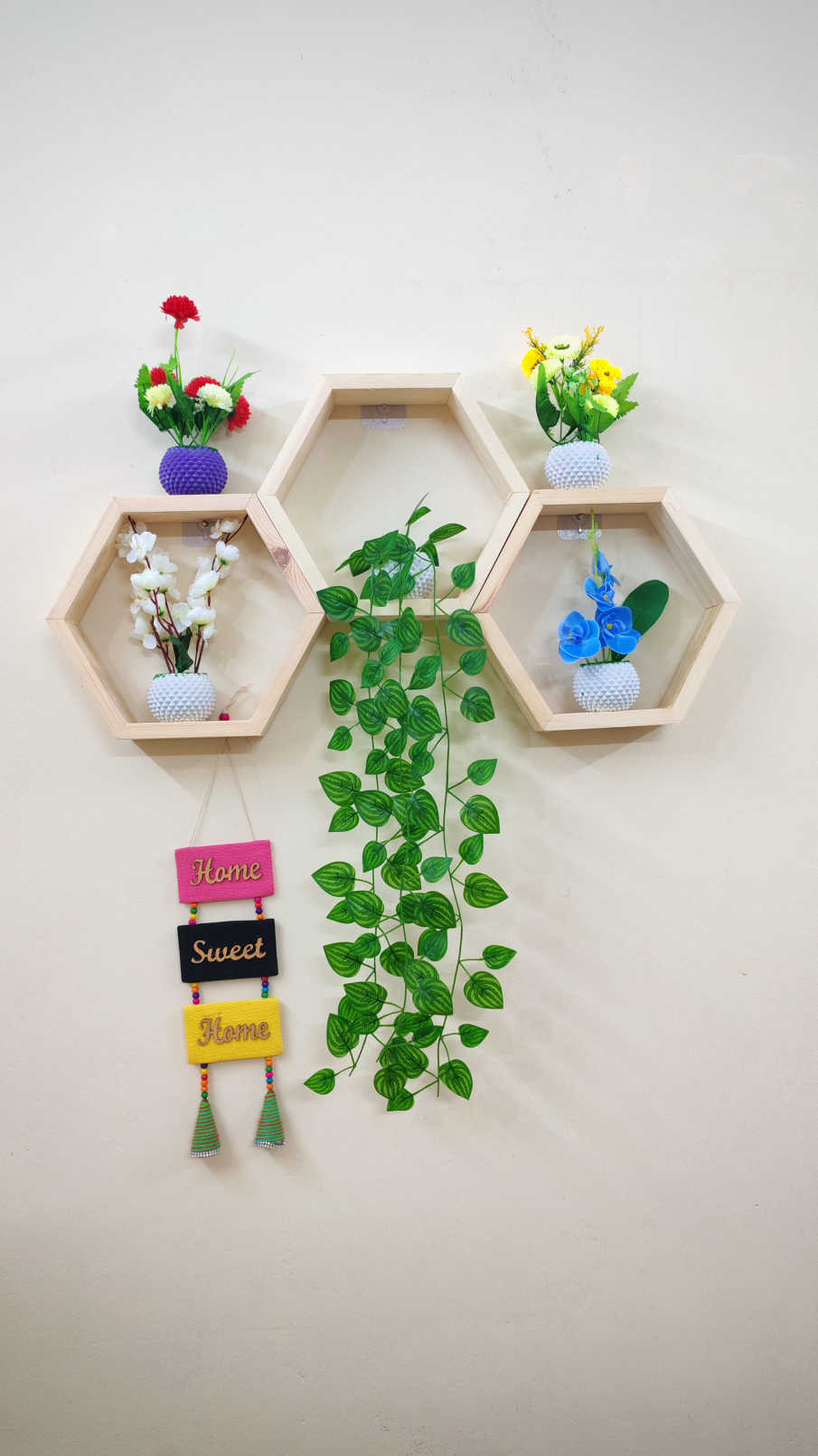 -20%🏠তিনটি হেক্সাগন (ছয়কোণা) কাঠের ফ্রেম সাথে ৫ টি চায়না ইমপোর্টেড ফুলের টব। 👉সাথে পেয়ে যাচ্ছেন ৩ পার্টের ১ টি হোম সুইট হোম। 👉প্রতিটি প্রোডাক্ট ঝুলানোর জন্য ৪ টি ওয়াল হুক।
