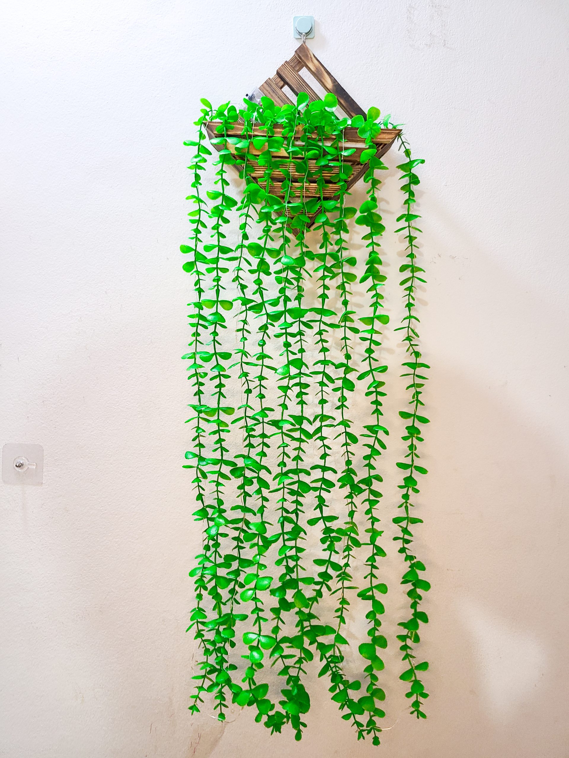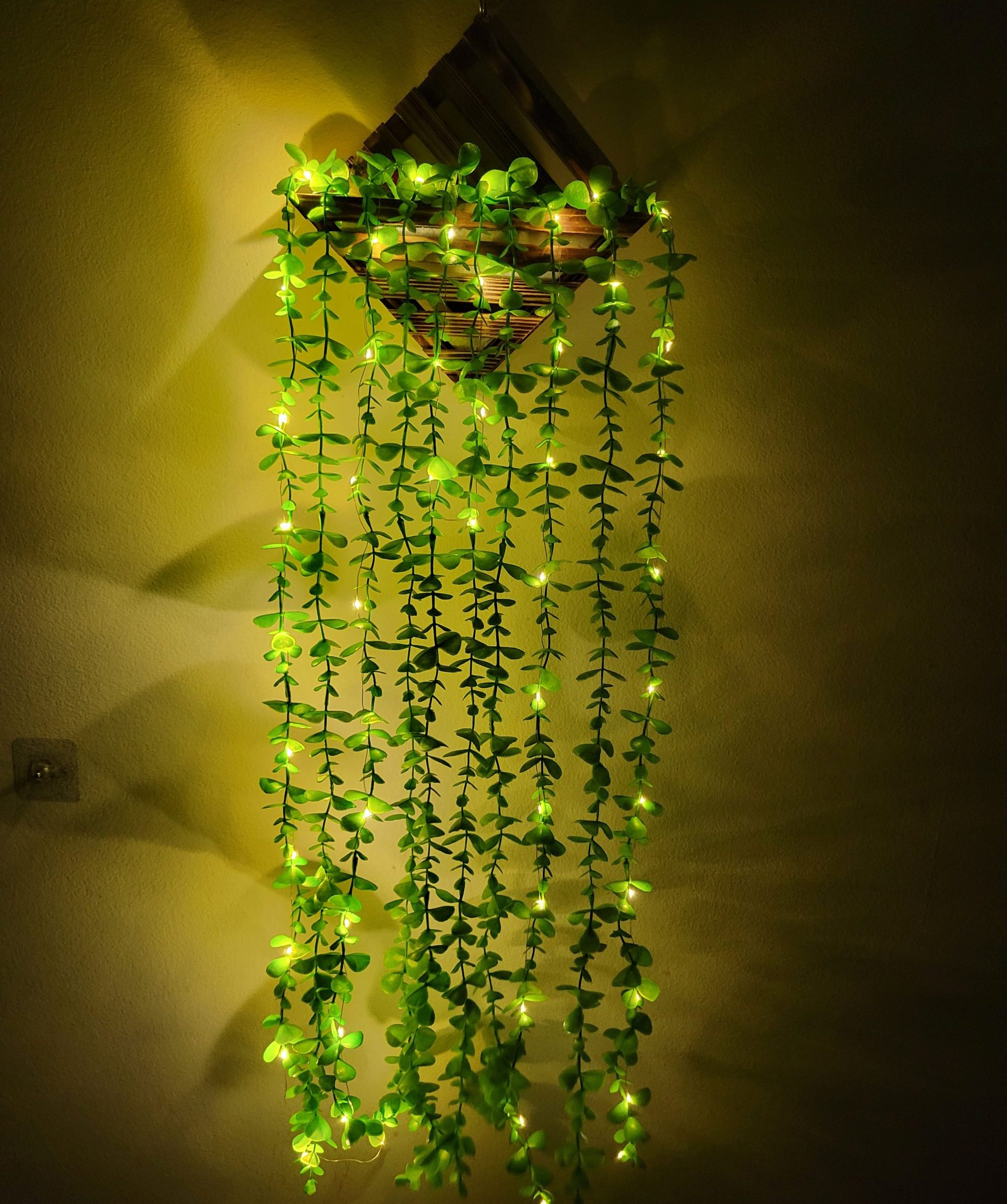 ঝাড়টির পাতাগুলো দেখতে একদম আসল কয়েন পাতার মতো, যা দেয়ালের সঙ্গে ঝুলে পড়া সবুজের একটি নান্দনিক ঝরনা তৈরি করে। এর মধ্যে স্ট্রিং লাইট সেট করা আছে, যা রাতের বেলায় একটি মৃদু আলো ছড়িয়ে দেয়, আপনার ঘরকে করে তোলে আরও আকর্ষণীয়।