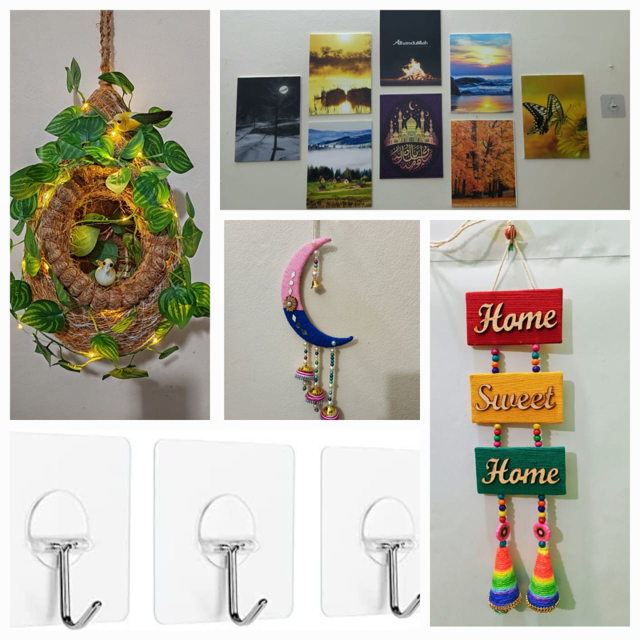 কম্বো সেটটিতে আপনারা পেয়ে যাবেন বড় সাইজের একটি বাবুই পাখির বাসা যা লাইট এবং পাতা সেট করা, ৮ টি ওয়াল বোর্ড, ১ টি চাঁদ ডোরবেল, তিন পার্টের একটি হোম সুইট হোম, এবং ৩ টি ওয়াল হুক।