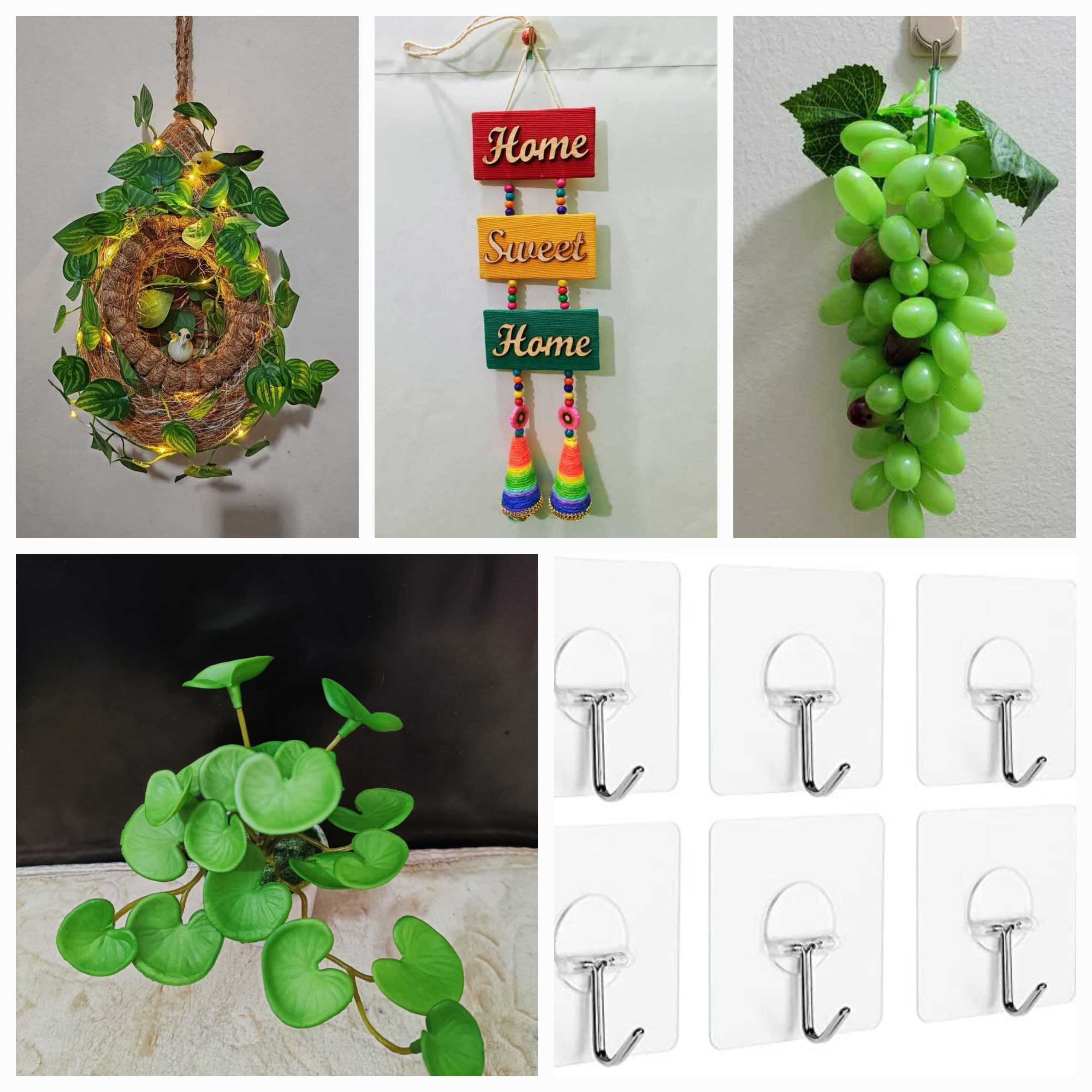 কম্বো সেটটিতে আপনারা পেয়ে যাবেন বড় সাইজের একটি বাবুই পাখির বাসা যা লাইট এবং পাতা সেট করা, একটি আর্টিফিশিয়াল আঙ্গুর লতা, একটা কয়েন্ট প্লান্ট, তিন পার্টের একটি হোম সুইট হোম, এবং পাঁচটি ওয়াল হুক।